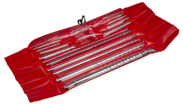 CMD5122420 16 piece Masonry Twist Drill Bit Set, 4mm to 22mm. The 16 piece set of masonry drill bits from RS PRO features drill bits in sizes ranging from 4mm to 22mm that are ideal for use in a wide range of electrical installation and maintenance work. These high quality drill bits are compatible with power tools such as hammer action drills, ensuring quick and efficient drilling in a variety of masonry materials such as concrete and brick. The RS PRO 16 piece masonry drill bit set is supplied with a durable storage tool roll case with easy access, ensuring