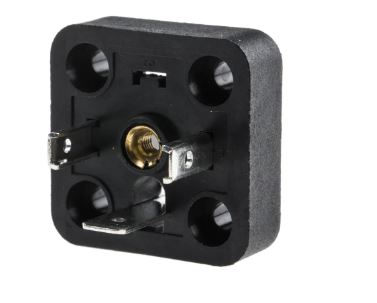 CMD8118238 2P+E DIN 43650, Male Solenoid Valve Connector. selection 2 and 3 pole flat plugs for use with DIN socket connectors associated with this range, solder terminals and screw mouting featuring a Nitrile/silicon sealing gasket with polymide body material.