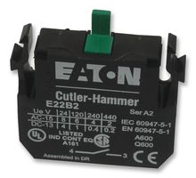Contact Block, 1NO, 10 A, 600 V, 1 Pole, Screw. The E22B2 is a 10A single circuit Contact Block with screw terminals. It is suitable for use with Eaton E22 series pushbutton switches.